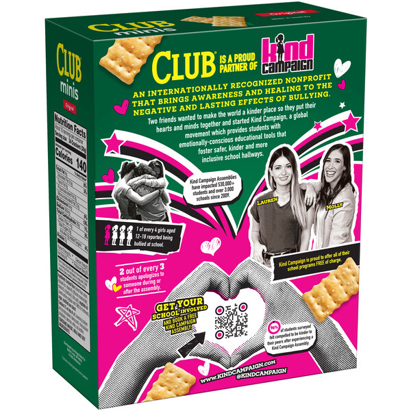 CHICAGO, Oct. 1, 2025 /PRNewswire/ -- Club Crackers® is proud to announce a national partnership with Kind Campaign, the internationally recognized nonprofit dedicated to ending girl-against-girl bullying, founded by Lauren Paul and Molly Thompson. At its heart, the initiative is about reaching young girls where they are — in their classrooms, their friend groups, and their everyday lives — and reminding them of the power of kindness and belonging. Launching this fall, it comes at a moment when that reminder is urgently needed: nearly one in five students report being bullied at school, according to the Center for Disease Control and Prevention (CDC, 2024), and recent studies show rates of loneliness among youth have reached historic highs (Education Week, 2025). Together, Club Crackers and Kind Campaign will work to help turn those statistics around by sparking empathy, connection, and tangible change for students, teachers, and families nationwide.