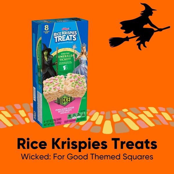 Pink goes good with green in this spellbinding collaboration with Universal Studios and Fandango. Rice Krispies Treats is launching a Wicked-inspired product featuring shaped sprinkles for the first time ever. Look for the Emerald Ticket inside select packs, 100 lucky fans will win a double feature: streaming access to Wicked Part 1 and four movie tickets to Wicked: For Good in theaters this November. Available at Walmart, Target, Albertsons, Dollar General, and more.